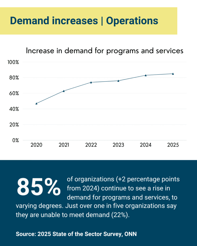 - The uncertain economy (i.e. tariffs and global trade war) is driving up demand for nonprofit programs and services while further reducing resources and capacity.